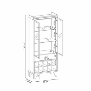 Diferenciais: Design moderno; Portas de vidro emolduradas em MDF revestidas com papel melamínico; Prateleiras de vidro 6mm com suportes cromados; Espelhos 3mm ao fundo; Moldura superior; Nicho Adega.