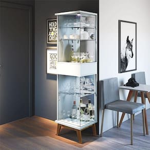 A cristaleira da linha Nuance combina elegância e funcionalidade, apresentando duas portas em vidro são perfeitas para destacar seus cristais e louças. Três prateleiras em vidro oferecem amplo espaço para exibir seus objetos de forma organizada e acessível. Possui um espelho que dá uma sensação de profundidade ao ambiente. As duas luminárias em LED proporcionam uma iluminação suave. Além disso, é equipada com uma gaveta espaçosa, perfeita para guardar seus utensílios. Seus pés em madeira maciça entregam mais estabilidade. Produzido pela Imcal, são desenvolvidos em MDP/ MDF com materiais de alta qualidade entregando mais durabilidade. Com um design moderno e sofisticado será a escolha elegante, dando um toque de sofisticação e organização para sua casa. Confira e garanta o seu!