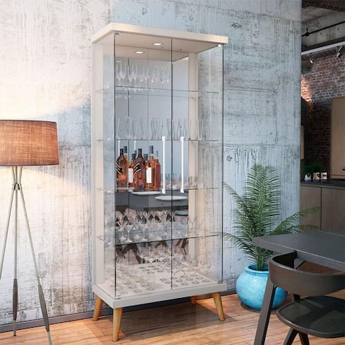 A cristaleira da linha Tifanny é uma peça elegante e funcional, perfeita para destacar suas coleções de cristais e louças. Possui duas portas e laterais em vidro, proporcionando uma visão clara e ampla do interior. Composta por quatro prateleiras em vidro oferece amplo espaço para organizar e exibir seus objetos. Além disso, conta com espelho, dando a sensação de profundidade ao ambiente. Equipada com uma luminária LED proporciona uma luz suave dando um toque de elegância. Os pés em madeira maciça oferecem estabilidade e aparência clássica. Produzido pela Imcal, é desenvolvida em 100% MDP com materiais de alta qualidade garantindo mais durabilidade e prolongando a vida útil do móvel. Combinando praticidade com estilo, a cristaleira é uma escolha sofisticada para complementar seu ambiente. Confira e garanta o seu!