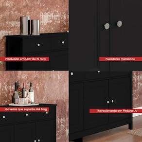 Fabricante: Ditália Moveis | Cor: Branco | Tipo de material: Madeira Cor: Preto