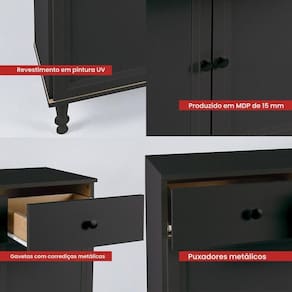 - Possui 2 gavetas com corrediças metálicas que suportam até 5 kg cada.