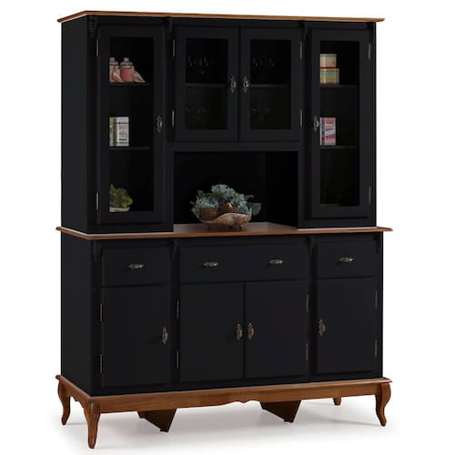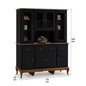 Cristaleira Arca e Oratório 8 Portas 3 Gavetas com Nicho Central e Pés Luiz XV 60634 Linz Móveis - Preto/Imbuia Glazer - Não informado