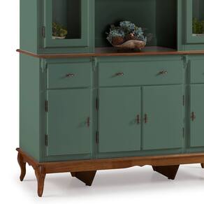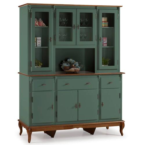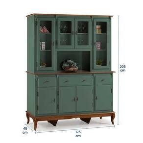 Cristaleira Arca e Oratório 8 Portas 3 Gavetas com Nicho Central e Pés Luiz XV 60634 Linz Móveis - Verde Musgo/Imbuia Glazer