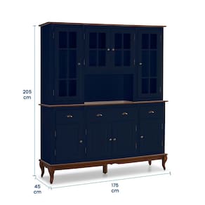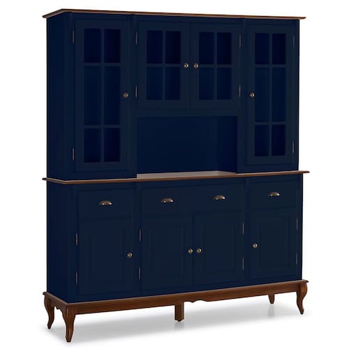 Suas 8 portas proporcionam acesso fácil e organizado ao seu amplo espaço interno, as portas superiores possuem acabamento em vidro, garantindo que suas louças fiquem a mostra e ajudem na decoração. Além disso, a presença de três gavetas adiciona uma camada de praticidade, oferecendo espaço adicional para organizar itens essenciais com facilidade. O nicho central é o ponto focal, destacando-se como um espaço dedicado para exibir itens especiais, adicionando um toque pessoal à peça.