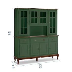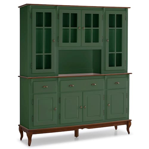 Cristaleira Arca e Oratório Hannover 8 Portas 3 Gavetas com Nicho e Pés Luiz XV - Verde Musgo/Imbuia