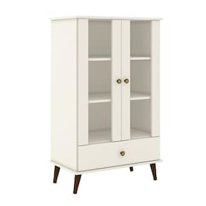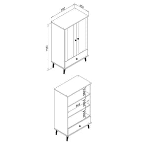 Caracteristicas do produto: Matéria-prima: 100 MDP Revestimento: Pintura UV Acabamento: Fosco Portas: 2 Dobradiças: Metálicas Gavetas: 1 Corrediças: Aço Puxadores: Zamac Prateleiras: 2, com capacidade suportada de até 7Kg Pés: Madeira Altura dos pés: 14 cm Dimensões internas das gavetas: -LxAxP- 61,5x10x33,5cm