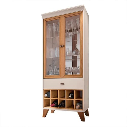 Apresentamos a sofisticada Cristaleira Bar e Adega Andorra Decorativa Sala de Estar, uma fusão requintada de estilo e funcionalidade que elevará a atmosfera da sua sala de estar a um patamar. Construída com a expertise da Madeira MDP e MDF, essa cristaleira impressionante destaca-se por seu design elegante e detalhes pensados. O nicho adega para 10 garrafas é um toque luxuoso que une estética e utilidade. Duas prateleiras de vidro de 6mm com toques espelhados adicionam profundidade e sofisticação, enquanto os três puxadores com acabamento metálico unem funcionalidade e beleza. A gaveta espaçosa com corrediça telescópica oferece espaço para armazenar itens diversos, mantendo a organização impecável. As duas portas de vidro com moldura superior e dobradiças metálicas completam o visual refinado, permitindo que você exiba seus objetos com elegância. Com pés de madeira maciça, este móvel garante estabilidade e um toque de charme natural. A Cristaleira Bar e Adega Andorra Decorativa Sala de Estar - Gran Belo é o símbolo da elegância funcional, projetada para acomodar, exibir e elevar a decoração da sua sala de estar, fazendo dela um verdadeiro centro de atração.