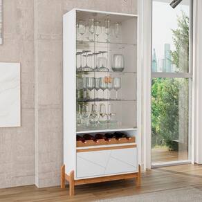 Cristaleira Bari 2 Portas E 1 Gaveta Com Adega Branco/cedro - Casa D Branco/cedro Cristaleira Bari 2 Portas e 1 Gaveta com Adega - Casa D Descubra a elegância e funcionalidade da Cristaleira Bari 2 Portas e 1 Gaveta. Com uma estrutura em MDP e MDF e acabamento em pintura UV, essa peça é tanto durável quanto estilosa. As duas portas de vidro temperado de 4mm oferecem uma visão clara dos seus objetos, e o amplo espaço interno é dividido por três prateleiras de vidro temperado. As dobradiças metálicas garantem durabilidade, e os puxadores de alça de couro ecológico adicionam um toque de sofisticação. A gaveta inferior é espaçosa, com corrediças telescópicas que permitem um movimento suave. Além disso, há espaço para até 5 garrafas, ideal para sua coleção de vinhos. O tampo e as laterais em MDP de 15mm proporcionam resistência, enquanto os pés de madeira maciça oferecem estabilidade. A Cristaleira Bari é a escolha perfeita para quem deseja combinar design moderno e praticidade em um só móvel. ESPECIFICAÇÕES: - Estrutura em MDP e MDF - Pintura UV - 2 Portas de vidro temperado de 4mm - Amplo espaço interno dividido por 3 prateleiras de vidro de 4mm temperado - Dobradiças metálicas - Puxadores de alça de couro ecológico - Gaveta inferior com amplo espaço interno - Corrediças telescópicas - Espaço para 5 garrafas - Tampo e laterais em MDP de 15mm - Pés de madeira maciça