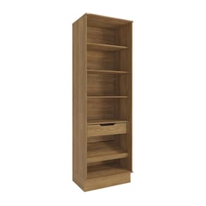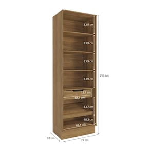 Acabamento: Pintura Touch | Acabamento da Fita Borda: Papel | Cor: Nogueira | Corrediças: Telescópicas | Dobradiça: Com Amortecimento | Garantia: 3 meses para defeito de fabricação | Matéria-prima: MDF / MDF/ Vidro | Peso suportado por cada gaveta: 6 Kg | Peso suportado por cada prateleira: 7 kg | Puxadores: Metálicos | Quantidade de gavetas: 1 | Quantidade de portas: 2 | Quantidade de prateleiras: 5 | Sistema de montagem: Parafuso Philips | Tipo de porta: Bater