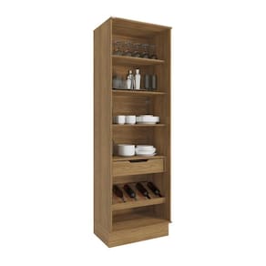 Sua cozinha com toda a beleza e praticidade da Cristaleira 2 Portas N731 da Cozinha Celeste da Kappesberg. Produzida em chapa MDF de 15mm, ela garante robustez, firmesa e qualidade, além de um acabamento perfeito. Com sete camadas de pintura na cor nogueira, tanto na parte interna quanto na externa, seu acabamento touch, com a textura dos veios da madeira, além de combinar com todos os ambientes, garante a sensação de conforto e aconchego ao espaço, remetendo aos tons da natureza e deixando sua cozinha perfeita. Moderna e robusta, a cristaleira é a peça perfeita para quem procura por estilo e qualidade, e com seis prateleiras, ela possui o espaço ideal para expor suas garrafas de bebidas, deixando-as sempre ao alcance. E com uma gaveta, com corrediça telescópica, você organiza louças e acessórios com beleza e funcionalidade. O destaque fica para a moldura e o vidro reflecta nas portas, que garantem ainda mais sofisticação, assim como as dobradiças com amortecimento, que proporcionam um fechamento suave e sem ruídos, além de mais durabilidade. E seus puxadores metálicos quadrados na cor dourada completa o design e a qualidade da cozinha, deixando seu ambiente ainda mais estiloso. Renove seu espaço e o deixe ainda mais completo com a Cozinha Celeste da Kappesberg.