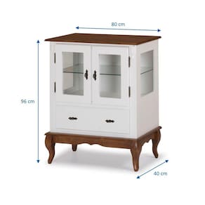 Cristaleira com 2 Portas e Laterais em Vidro Pés Luis XV 60312 Linz Móveis - Branco/Imbuia Glazer