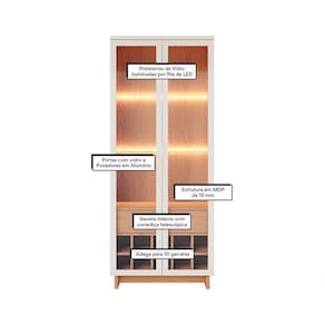Cristaleira com Adega 71x175cm Guanabara Off White Freijó