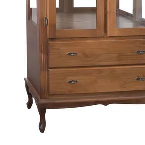 Com a Cristaleira com Espelho 2 Portas 3 Prateleiras de Vidro 2 Gavetas Pés Luiz XV Sevilha você não apenas adiciona um elemento funcional à sua casa, mas também uma peça que atrairá admiração e encanto a qualquer espaço. Internamente, conta com três prateleiras de vidro, perfeitas para exibir sua coleção de cristais, louças finas ou objetos de decoração favoritos. O espelho no fundo amplia visualmente o espaço e destaca os itens em exposição, além disso, esta cristaleira maciça com espelho apresenta duas gavetas espaçosas, ideais para armazenar pequenos objetos, mantendo tudo organizado e ao alcance das mãos.