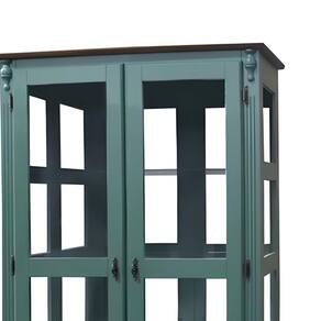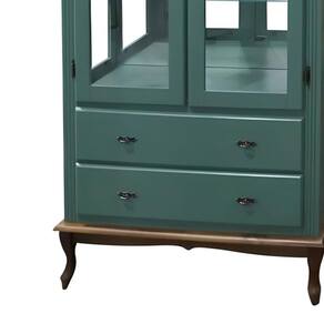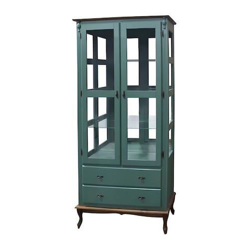 Cristaleira com Espelho 2 Portas 3 Prateleiras de Vidro 2 Gavetas Pés Luiz XV Sevilha -E - Verde