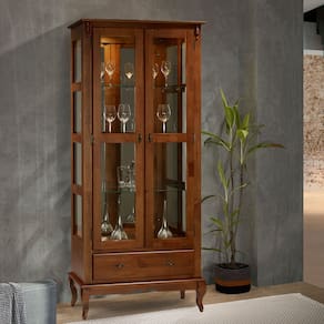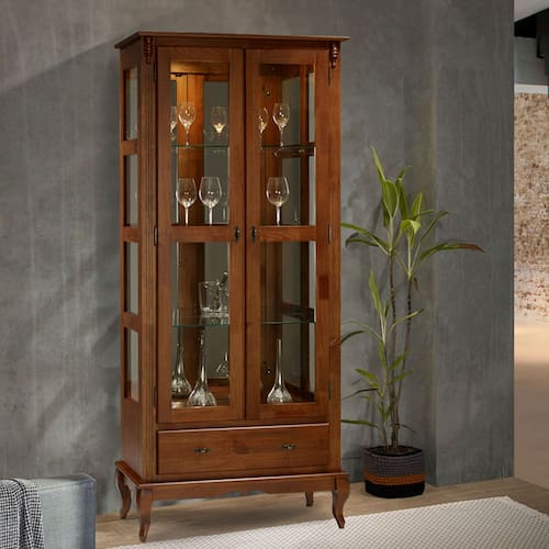 Produzida em Madeira Maciça para tons amadeirado em verniz e MDF nos tons coloridos com acabamento laca, materiais de alta qualidade e durabilidade, esta cristaleira de vidro e madeira com certeza vai impressionar. Encomende a sua hoje e eleve a decoração de sua casa ao próximo nível.
