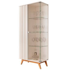 Cristaleira Moderna com Estrutura Lateral e Portas Ripadas de 24mm. Porta, lateral e prateleira de vidro temperado 4mm. Pés e travessas em madeira maciça. Produto entregue desmontado, montagem de responsabilidade do cliente. Acompanha uma cristaleira, kit ferragens e um manual de montagem.
