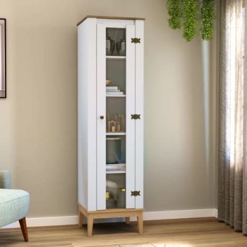 Cristaleira com Vidro 1 Porta Colonial MB 1017 Movelbento - Branco