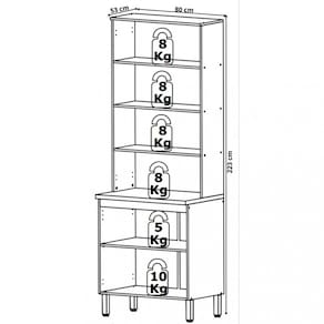 Dimensões: Altura: 223 cm Largura: 80 cm Profundidade: 53 cm Peso: 57,00 kg