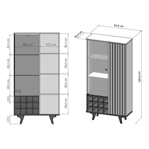 Dimensões do produto montado: Altura: 180cm | Largura: 90,5cm | Profundidade: 36,2cm *Você pode consultar as medidas detalhadas na imagem técnica do produto.