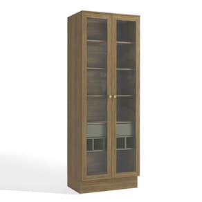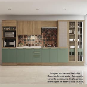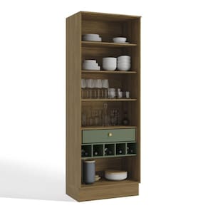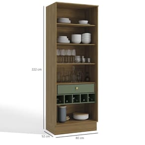 Cristaleira Cozinha 2 Portas de Vidro 1 Gaveta 4 Prateleiras 5 Nichos 80 cm Marrom Madeira Verde