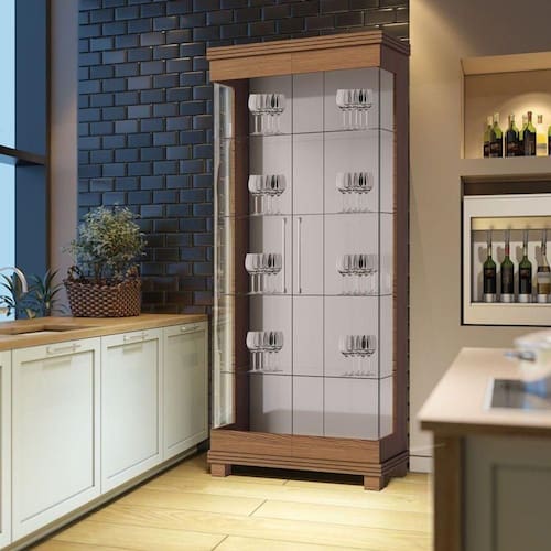 Cristaleira Cristal Freijó - Imcal Móveis Precisando de um móvel para guardar aquelas lindas taças, pratos e todas as aquelas louças que são mais delicadas? A Cristaleira Cristal - Imcal Móveis é perfeita para completar sua cozinha ou sala de jantar com sofisticação; armazenando de forma fina e requintada todas suas louças, deixando o ambiente muito mais organizado. Aproveite e leve está luxuosa cristaleira!Dimensões do Produto Montado:Altura: 175 cmLargura: 72 cmProfundidade: 38 cmObservações:- Possui 2 portas de vidros;- Possui 4 prateleiras de vidro temperados;- Espelho ao fundo 3mm; - Iluminação led bivolt na parte superior com interruptor;- Pode ser usada como bar e/ou cristaleira;- Portas com puxadores de alumínio;- Pintura Ultravioleta com acabamento fosco. Marca: Não Informado