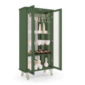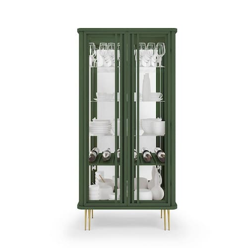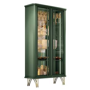 Os pés de aço maciço com acabamento dourado adicionam um toque de requinte, proporcionando estabilidade e sofisticação. Disponível em Off White, Off White-Cinamomo e Verde Pistache, a Cristaleira Crystal se adapta a diversos estilos de decoração.