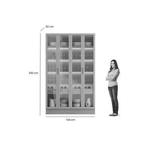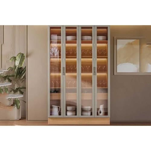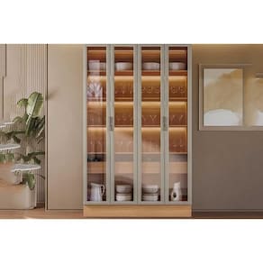 Tipo de Dobradiças - Slow Motion Tipo de puxador - Alumínio Escovado Quantidade de Portas - 4 Portas de Abrir Diferenciais das Portas - Portas de Vidro Quantidade de Portas c/ Vidro - 4 Portas c/ Vidro Tipo de Vidro - Vidro Incolor Tipo de Gaveta - Gaveta Interna Quantidade de Gavetas - 2 Gavetas Tipo de Corrediça - Telescópicas Material das Prateleiras - Prateleiras em MDF Quantidade de Prateleiras - 5 Prateleiras