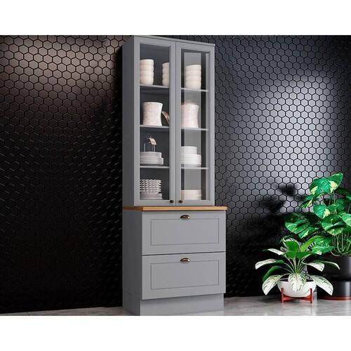 Cristaleira de Cozinha Americana c/ 2 Portas (2 c/Vidro) c/ 2 Gavetas 71,5cm Cinza/Nature - Henn