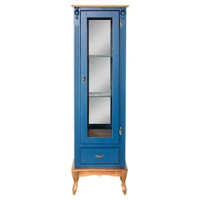 - 1 Cristaleira de Madeira 1 Porta 1 Gaveta 3 Prateleiras Lateral com Vidro Espelho no Fundo Pés Luiz XV