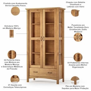 ColorFamily: Carvalho | SupplierSimpleName: Cristaleira de Madeira Com Vidro 2 Portas 1 Gaveta Lira M06 Carvalho Fosco - Lyam Decor | MaterialFamily: Madeira | Model: Lira | ColorSupplier: Carvalho Fosco | Material: Madeira Maciça | Com alça: Sim | ProductWeight: 56 kg | Quantidade de prateleiras: 3 | Linha: Sala de Jantar, Rústico | ProductContents: 01 Cristaleira | ProductHeight: 188 cm | SizeDescription: Largura: 93 cm x Altura: 188 cm x Profundidade: 45 cm | Quantidade de gavetas: 1 | ProductWarranty: 90 dias após o do produto | ColorSimple: Carvalho | Color: Carvalho | Requer montagem: Sim | Cor: Carvalho Fosco | Quantidade de portas: 2 | Altura: 188 cm | Profundidade: 45 cm | Fabricante: Lyam Decor | Largura: 93 cm | Com corrediças: Sim | ProductWidth: 45 cm | ProductInstructions: Produto para uso em ambiente interno, nao devendo ficar exposto ao sol, calor e umidade excessivos. | Com rodas: Não | ProductLength: 93 cm | OriginState: PR | OriginCountry: