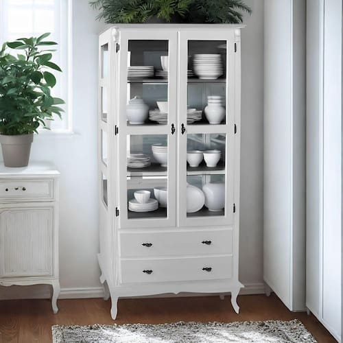 A Cristaleira Sevilha 1095-E combina elegância e funcionalidade. Com duas portas de vidro, três prateleiras de vidro e fundo espelhado, ela exibe suas coleções com sofisticação. As duas gavetas oferecem praticidade para guardar itens pequenos. Os pés Luiz XV adicionam um toque clássico e atemporal, enquanto a madeira de alta qualidade garante durabilidade e resistência.