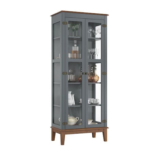 A Cristaleira de Madeira Maciça 2 Portas - CINZA, é uma peça com estilo rústico e atemporal, traz um toque de aconchego para o ambiente.