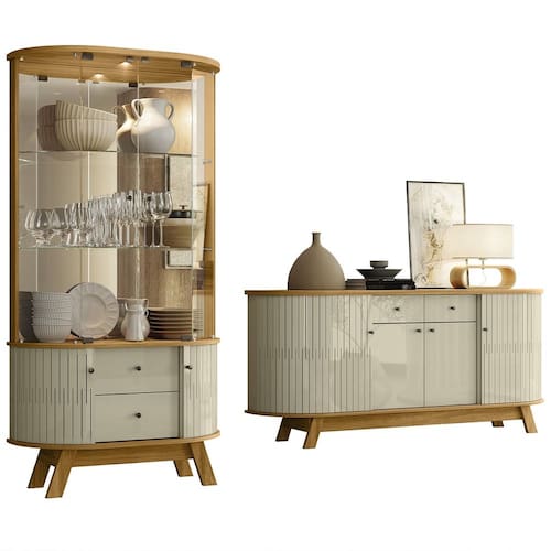 O Cristaleira de Vidro e Buffet Eva Z10 Cumaru/Opala, da Mpozenato, é a combinação perfeita de sofisticação e funcionalidade para sua Sala de Estar.