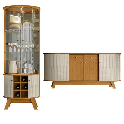 O Cristaleira de Vidro e Buffet Melina Z10 Off/Cinamomo, da Mpozenato, é a combinação perfeita de sofisticação e funcionalidade para sua Sala de Estar.
