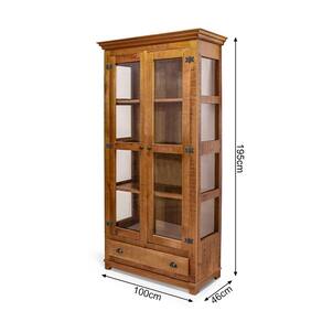 Cristaleira rústica em madeira maciça com vidro e gaveta, perfeita para expor louças e decorar com elegância. Com design clássico e acabamento natural, une charme, funcionalidade e durabilidade.