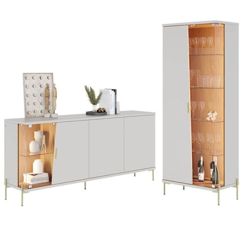 Cristaleira e Aparador Buffet Sena com Led Sena Off White Matte Freijó – Colibri