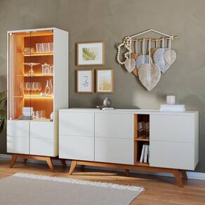 Cristaleira E Balcão Buffet Noronha Off White Matte Freijo Colibri