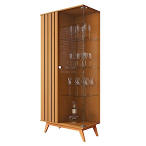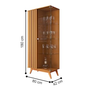 A cristaleira é feita em MDP 24mm. Contém 1 porta com detalhes ripados e 1 de vidro e 3 prateleiras.