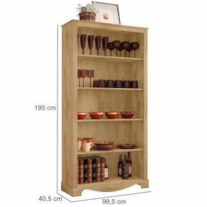 Estrutura: MDP, tampo com espessura de 18 mmAcabamento: Pintura U.V., interior na cor do produto Prateleira: Sim, 05 prateleiras com largura de 90 cmPés: Sim, sapata antiumidadeDimensões do produto montado