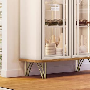 - Pés de aço maciço 3/8 com acabamento em tom dourado