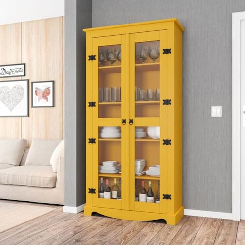 A Cristaleira é um móvel cheio de personalidade e indicado para deixar sua sala de jantar ainda mais charmosa. é também perfeito para expor suas louças e permite total visualização dos mesmos em seu interior a partir de suas duas portas de abrir em vidro. Com puxadores e dobradiças em metal, 4 prateleiras e vidro em 3mm. Informações do produto: Altura: 195 cm Largura: 41 cm Comprimento: 100 cm Informações do produto: Cor: Amarelo Peso suportado: Até 30 kg distribuídos Puxadores: Sim Portas: Sim Prateleiras: Sim Material Principal: MDF Itens inclusos: 01 Cristaleira Kit completo para montagem e manual de instruções Garantia: 3 meses. Informações Complementares: - Verificar o tamanho e detalhes do produto antes da compra. - Fotos meramente ilustrativa. - A transportadora entregará o produto no andar térreo do endereço de entrega. - Avaliar a mercadoria no ato do recebimento e recusar em caso de divergência ou danos. - Não nos responsabilizamos pela montagem e desmontagem do produto no ato da entrega e devolução, assim como os custos gerados nestas situações. - Sugerimos a contratação de um montador para a montagem do produto. Não nos responsabilizamos por danos causadas no ato da montagem.