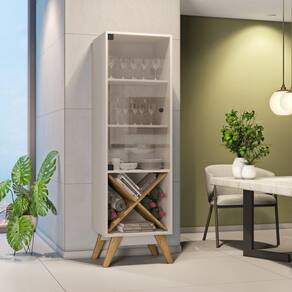 Com estilo retrô a Cristaleira Graça é o complemento ideal para organizar e deixar sua sala de jantar mais aconchegante. Produzida em MDP 15mm, Porta em vidro temperado, Adega decorativa, Pés em madeira maciça. Pesos e Dimensões Altura dos Pés: 20 cm Altura (cm): 158 cm Largura (cm): 44 cm Profundidade (cm): 39 cm Peso (kg): kg Materiais e Acabamentos Material Principal: MDP Material da Porta: Vidro Acabamento: Pintura UV Escala de Brilho: Fosco Acabamento da Porta: Cristal Escala de Brilho da Porta: Brilhante Tipo de Dobradiça/Corrediça da Porta: Metálica Acabamento da Prateleira: Pintura UV Escala de Brilho da Prateleira: Brilhante Material da Prateleira: MDP Montagem Necessita Montagem: Sim Complexidade da Montagem Baixa: pode ser montado por uma pessoa sozinha Sistema de Montagem: Parafusos e Minifix Recomendações de Uso, Manutenção e Limpeza Pano levemente úmido Características Tipo de Porta: Bater Marca: JCM Móveis Suporta Até (kg): 30 kg Quantidade de Garrafas da Adega: 06 Possui Vidro: Não Possui Rodízio: Não Possui Pés: 04 Possui Iluminação: Não Possui Gavetas: Não Possui Adega: Sim Peso Máximo por Prateleira: 4 kg Estilo: Retrô Sapatas Niveladoras: Não Tipo de Puxador da Porta: Externo Possui Espelhos: Não Itens Inclusos Itens Inclusos: Cristaleira, Kit Ferragens e Manual de Montagem.