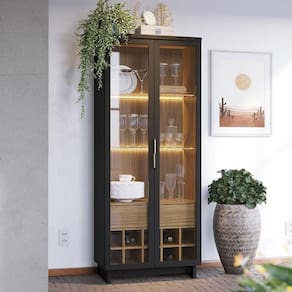 Cristaleira Guanabara 2 Portas De Vidro Com Adega Preto/noce Milano - Pr Móveis Preto/noce Milano Cristaleira Guanabara 2 Portas de Vidro com Adega - PR Móveis A Cristaleira Guanabara possui design minimalista, é uma ótima escolha para compor salas de estar ou jantar. Desenvolvida para armazenar e organizar utensílios de louças, possui duas prateleiras de vidro, iluminadas por fitas de LED, que são ideais para destacar e valorizar aquela coleção de taças ou copos especiais. Além disso, possui uma adega com espaço para 10 garrafas e uma gaveta interna para guardar travessas e aparelhos de jantar. Seu destaque fica por conta de suas portas em vidro, estilo retrô, que permitem que todo conteúdo interno fique à vista, garantindo assim, um toque especial ao móvel e maior praticidade para o dia a dia. ESPECIFICAÇÕES: - Estrutura em MDF e MDP - Pintura UV - 2 Portas de vidro - Dobradiças metálicas - 1 Gaveta interna - Corrediças telescópicas - 2 Prateleiras de vidro - Fitas de LED - Puxadores metálicos - Pés em sapata - Adega para 10 garrafas