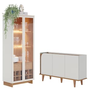 Cristaleira Guanabara Off White Freijó com Aparador Buffet Jurerê Off White Matte Freijó - Colibri