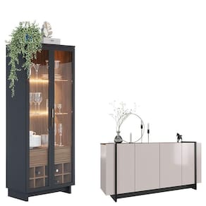 Cristaleira Guanabara Preto Acetinado Noce Milano com Aparador para Sala Buffet Copacabana Off White Nogueira Real Preto Acetinado – Colibri