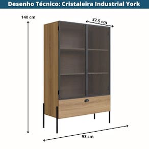 A Cristaleira Industrial York Artesano é moderna, urbana e autêntica, móvel produzido em MDP 15mm com acabamento em BP, as portas são em aço com detalhes em chapa expandida e acabamento em pintura epóxi fosca e fecho magnético, a gaveta tem puxador metálico e corrediça telescópica com extração total. Cristaleiras são peças ideais para agregar um toque especial ao ambiente, a linha York é moderna e tem uma pegada industrial, torna-se a opção ideal para quem gosta de personalidade e praticidade na hora de decorar.