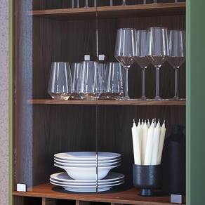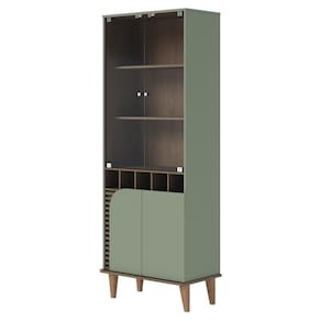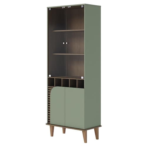 ESPECIFICAÇÕES: Estrutura em MDP 15mm e 12mm, MDF 15mm, HDF 3mm Pintura UV 4 Portas sendo 2 de vidro Dobradiças metálicas Porta com canto curvo Detalhe ripado Base com cantos curvos Puxadores de plástico metálico Nicho adega para 5 garrafas Prateleiras Pés de madeira maciça