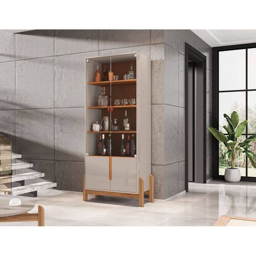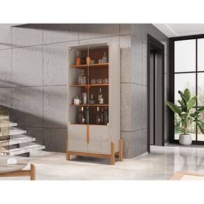 Cristaleira Lizz 4 Portas Pés em Madeira Vidro OffWhite com Cedro - Rede Móveis
