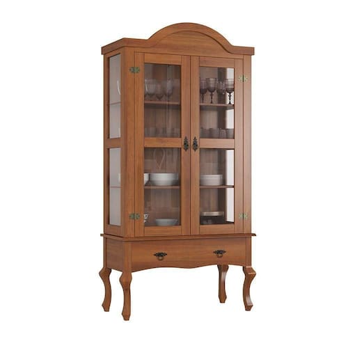 Além das portas de vidro, a Cristaleira Luís XV Alta oferece um amplo espaço de armazenamento, contando com uma gaveta e três prateleiras. Ideal para guardar utensílios de cozinha, toalhas de mesa, copos e muito mais. Assim, a cristaleira não só embeleza o ambiente, mas também contribui para a organização de sua casa.