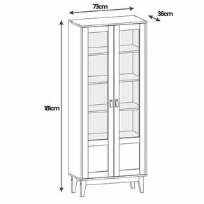 Material da estrutura: MDF de 15 mm e MDP 15 mm com pés de madeira maciça e vidro temperado de 15 mm;